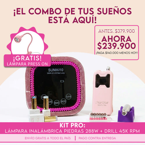Kit Pro: Lámpara inalámbrica piedras 288W + Drill 45k RPM + Lámpara Press On GRATIS
